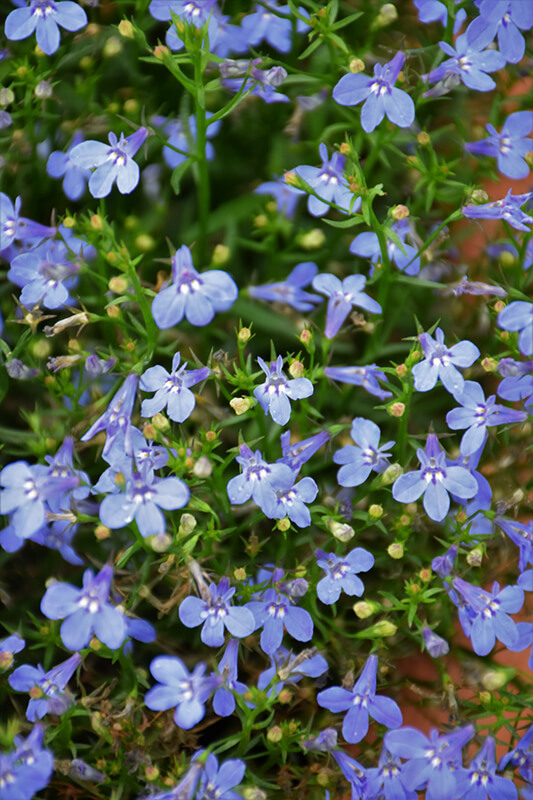 Sky Blue Lobelia covers garden beds and baskets with masses of tiny, vivid blue flowers. Its trailing habit makes it perfect for edging paths or spilling from containers. This annual thrives in cool weather and prefers moist, well-drained soil.