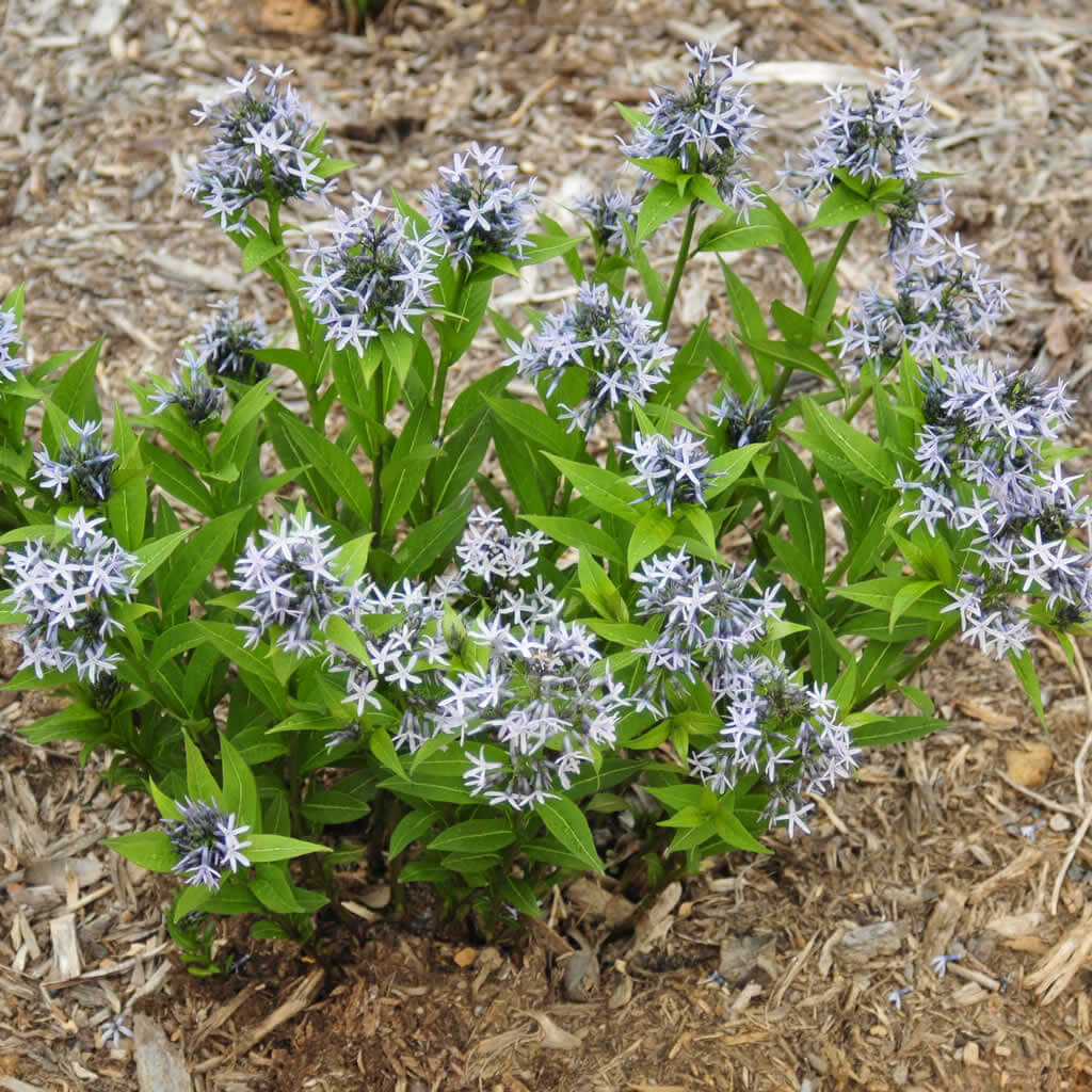 Blue Star features clusters of star-shaped flowers in pale blue, opening in late spring. This perennial does well in moist soil and full sun to partial shade. Water regularly to keep the soil evenly moist, especially during hot summers.