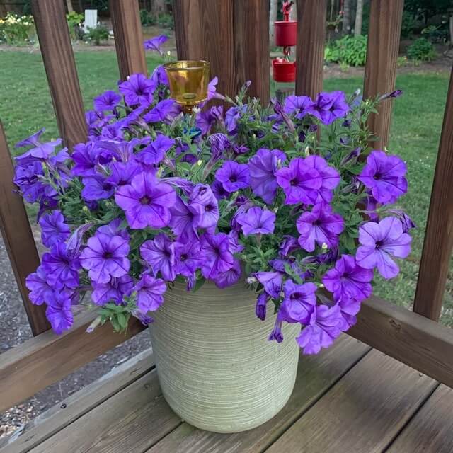 Fuseables Pleasantly Blue Petunia is a mix designed for cascading containers. It produces masses of blue-purple flowers all summer long. Plant in full sun with well-draining soil and fertilize every two weeks for the best display.