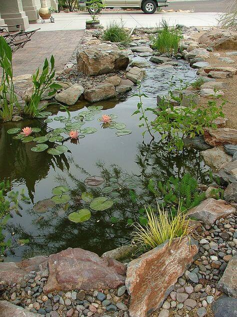 #7 A Small Stone Pond Design With Water Plants