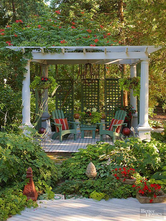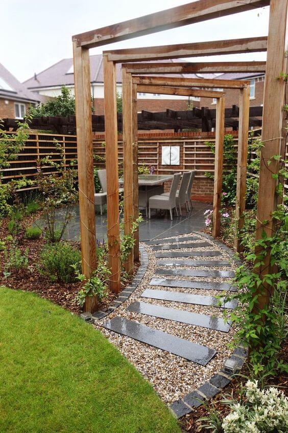 #16 A Green Outdoor Space With Plants And Pergola Design