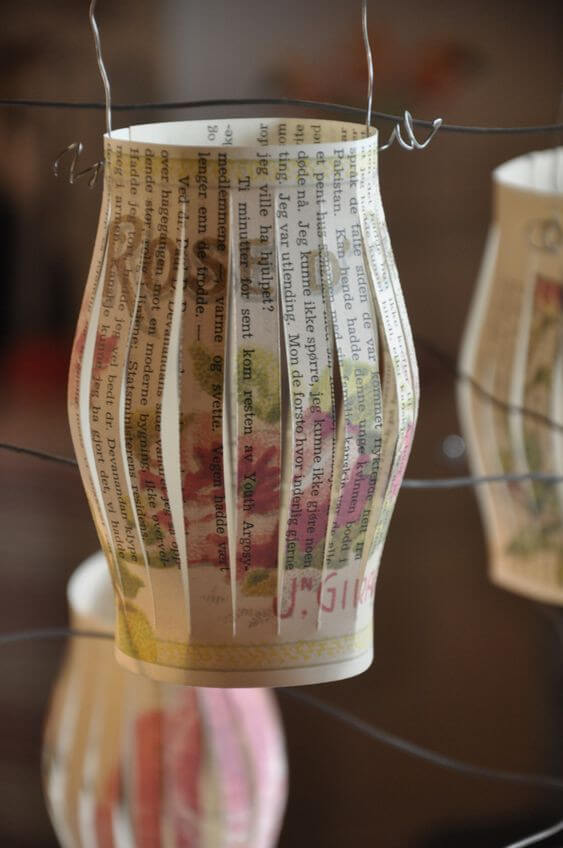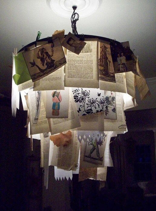 Step 4: Repeat with different books, varying folding patterns slightly if you like (e.g., diamond or accordion styles), and hang them at different heights for a dramatic paper chandelier effect.
