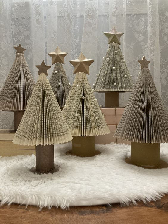Step 1: Roll each book page tightly into a cone shape and glue the edge to secure. Make about 25â30 cones. You can age the paper with a tea bath if you prefer a vintage tone.