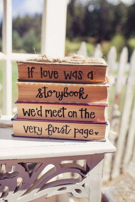I created a similar one for my anniversary table, and the quote on the spines felt like a poem you could read just by walking past.