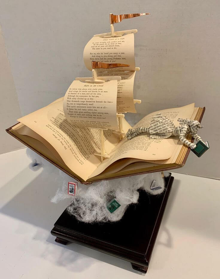 This paper ship rising from a vintage novel feels like imagination made visible, a tribute to every reader who s ever been swept away by a good book.