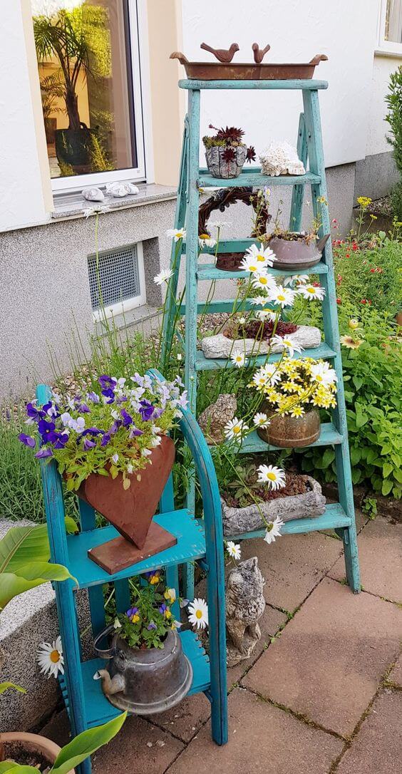 Not just that, even things like broken teacups and outdated ladders may be used with a little bit of imagination and hard work. With that in mind, this is the ideal moment to decorate your outside areas with lovely vintage pieces! To brighten up your yard, keep reading for 45 antique garden décor ideas!