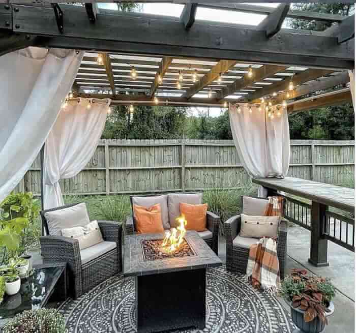 #19. Pergola With Lights And Curtains