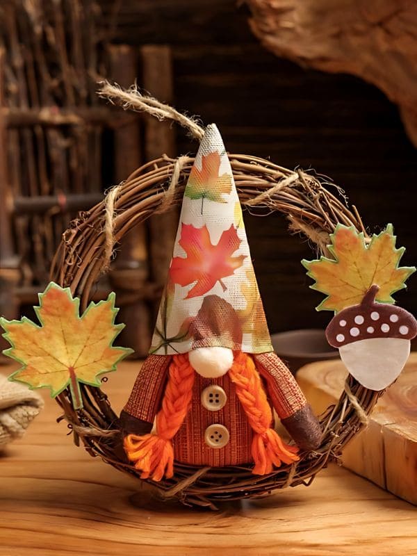 #27. Whimsical Autumn Leaf Gnome Wreath
