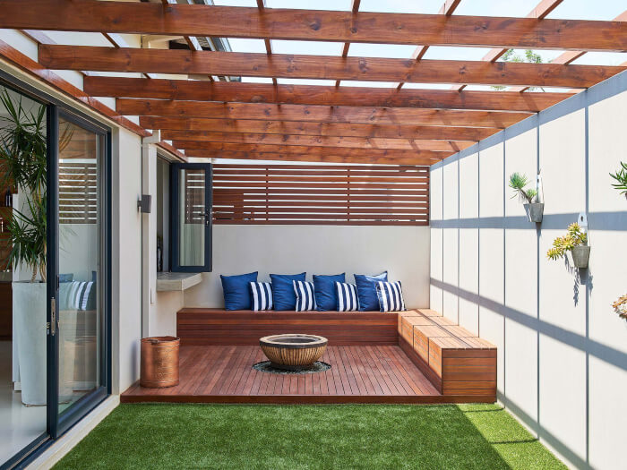 Source: The Spruce#16. A Cozy Living Room Under A Black Painted Pergola