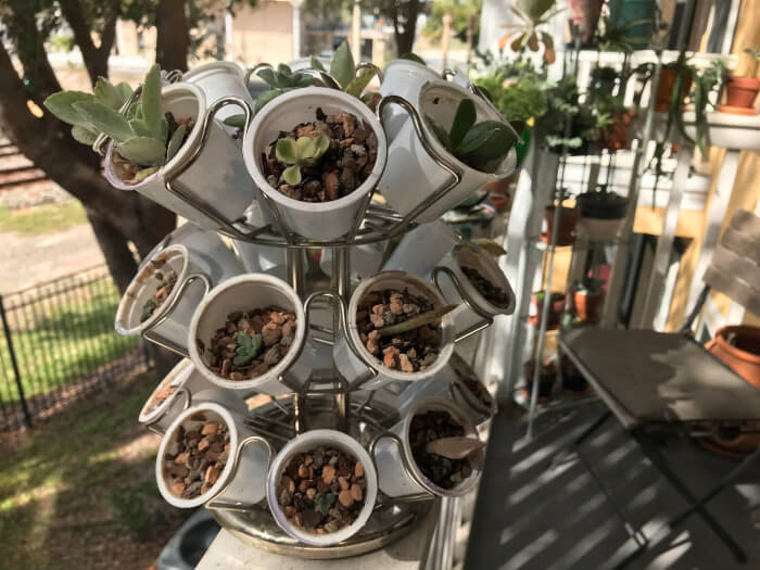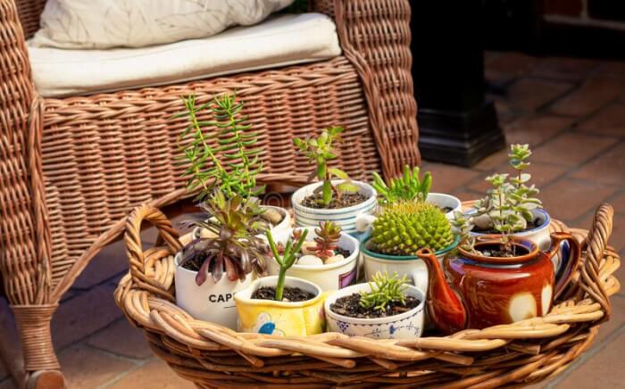 #7. Succulents Potted In Old Cups, Jugs And Tea Pots