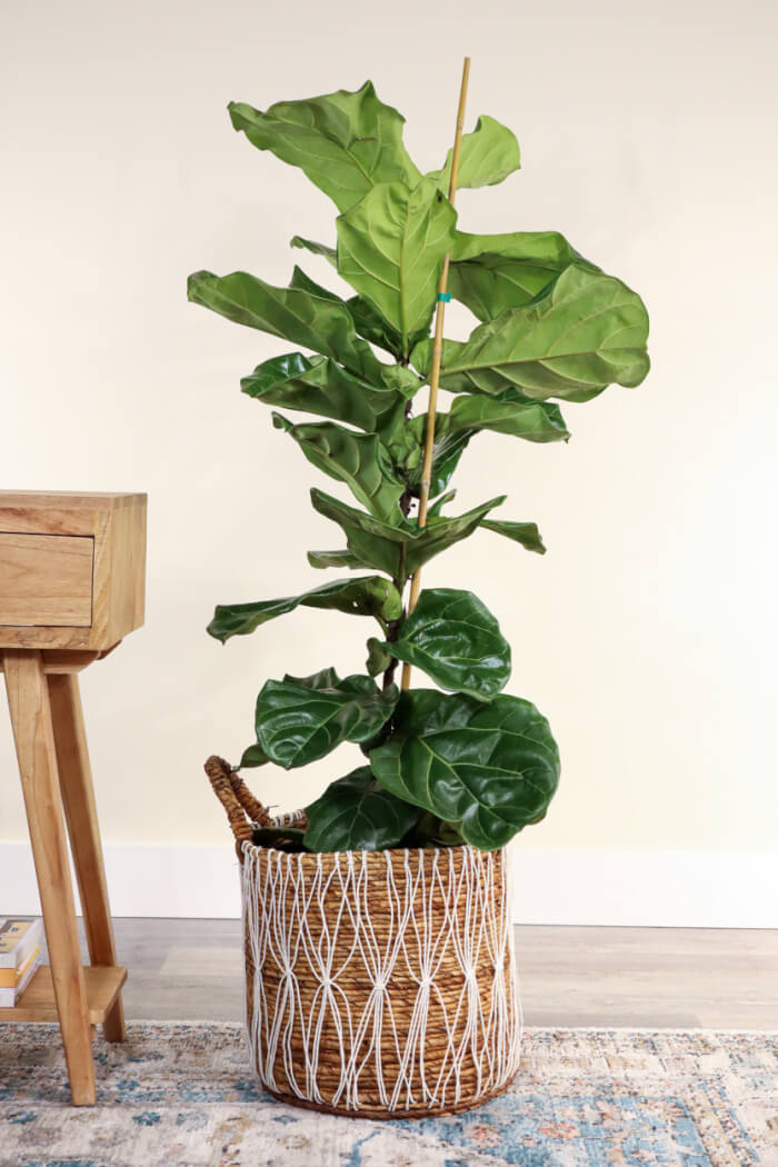 The Fiddle-Leaf Fig makes a bold statement with its large, violin-shaped leaves. Place it in bright, indirect light and keep the soil consistently moist but never waterlogged.