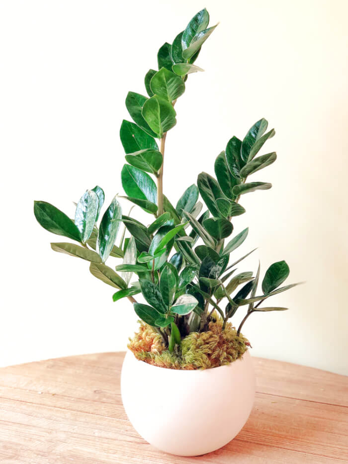 ZZ Plant is a hardy choice for even the darkest corners. Its shiny, waxy leaves stay vibrant with little care. Water sparingly, as the plant stores moisture in its roots.