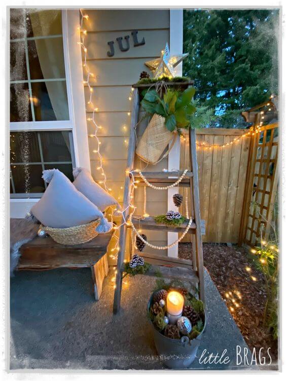 #18 A Dreamy Little Christmas Porch With Vintage Ladder