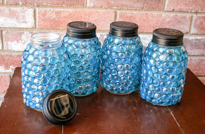 #21. Solar Light Lids and Glass Beaded Jars
